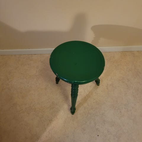 En höj och sänkbar trebent pall som tar lite plats.