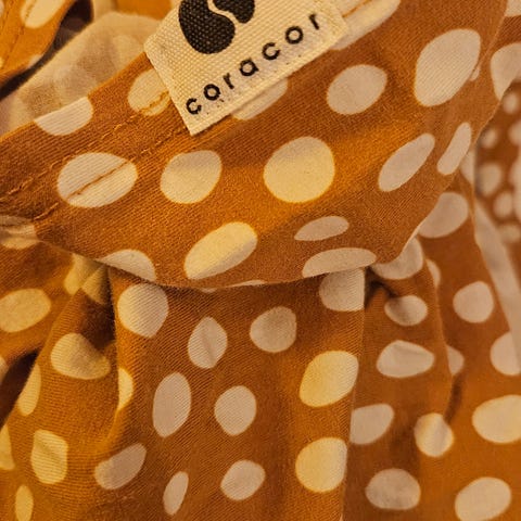 Coracor bärsjal i färgen Natural Dye Walnut, köpt i juni 2024.