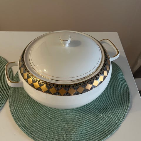 Storlek ca 34x26 cm, höjd ca 10 cm. Tung, troligen runt 1,5-2,5 kg