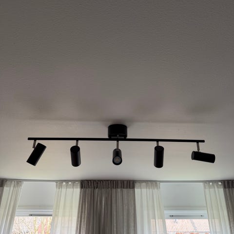 Nyskick: spotskena, Spotskenslampa Barcelona taklampa från Markslöjd med fem st ställbara lamphuvud. Stickpropp/lampkontakt saknas.