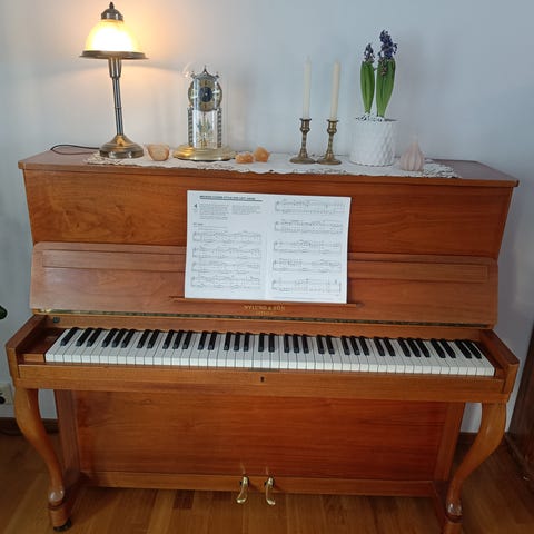 Vackert och stilrent piano i bra skick. Trätangenter varav en är något skadad. Behöver stämmas (men det krävs ju ändå efter en flytt).