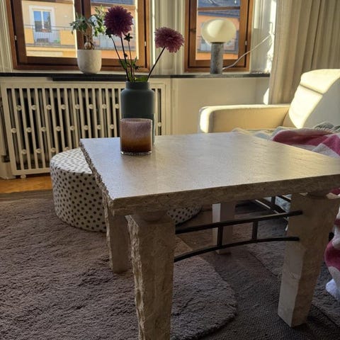 Säljer detta sidobord med toppskiva i travertin och underrede i järn från jotex i modellen Fossi. Toppskivan ligger löst på. Mått: 46x33.