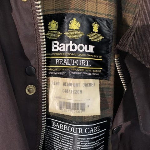 Mycket välbehållen jacka och väst utan revor eller hål i barbour storlek C50 127cm.