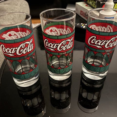 Säljer Coca-Cola-glas från Olympic Games London 2012 – helt nytt och oanvänt, fortfarande i obruten förpackning! Ett perfekt tillskott för samlare, nostalgiker eller som present till någon som älskar Coca-Cola-memorabilia.
