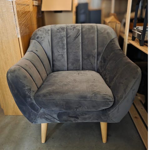 Fotölj från Butik Vardagsrum Östermalm. Mycket gott skick. Fin blå sammet. Har endast stått i gästrum. Nypris 7800:-