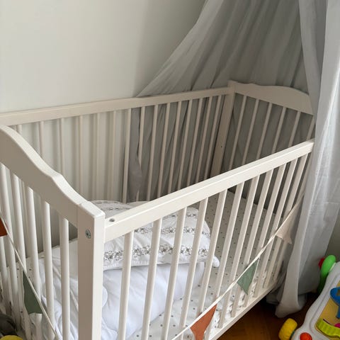 Perfekt att det är en bedsidecribe som du kan ställa ihop med din madrass om du vill, väldigt användbart speciellt första tiden.