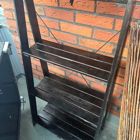 1 vit hylla med konsoller 119 X 28 80:-. 1 svart hylla med konsoller 59 X 24 60:-.