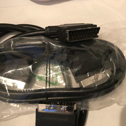 2 st scart kablar (21-pin) för anslutning av enheter som exempelvis DVD-spelare,S-VHS och video till TV-apparater. Kabellängder inklusive uttag 3 meter/1,40 m. Båda är i gott skick. Pris 50 kr.