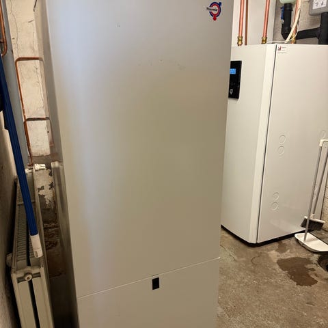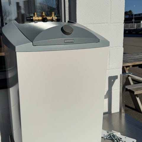 Den innehåller varmvattenberedare, elpatron och reglercentral.