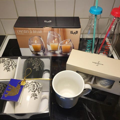 Med blommor som motiv används till kaffe eller te.