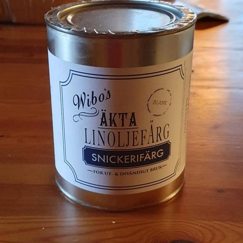En är öppnad och provmålade för att se hur det skulle se ut därefter köptes en färgsprura pg a putsfasad. Men Kom aldrig till skott gällande att faktiskt måla fasaden.