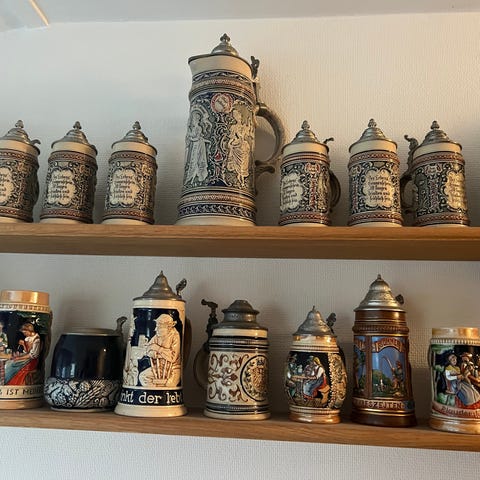 gamla spritmått 7st koppar m. stat. krönt årtal.