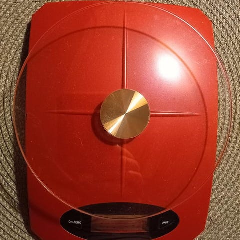 Den fungerar som den ska och visar vikten exakt. Lite använd men ser fortfarande fräsch ut.