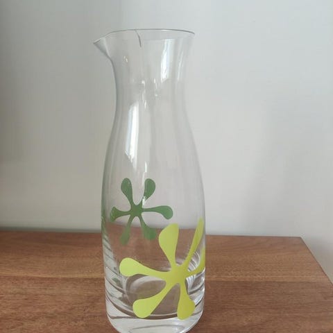 Handblåst glas karaff – unik form med dekorativ kant