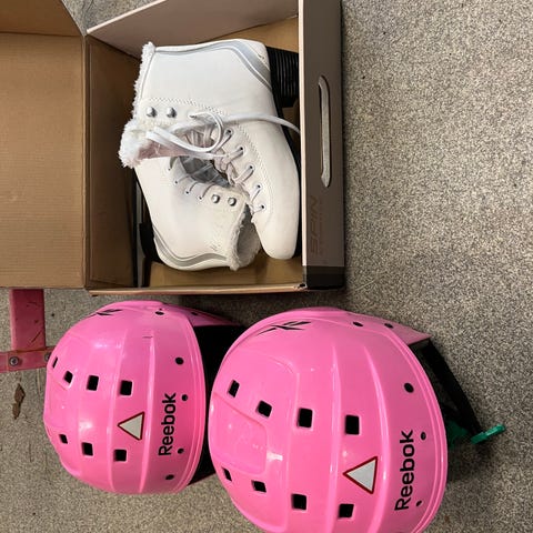 Utrustning använt ett fåtal gånger, skridskorna behöver inte slipas. Smart spänne på skridskorna gör det lätt att spänna åt. Passar till mor och farföräldrar som inte åker så mycket.