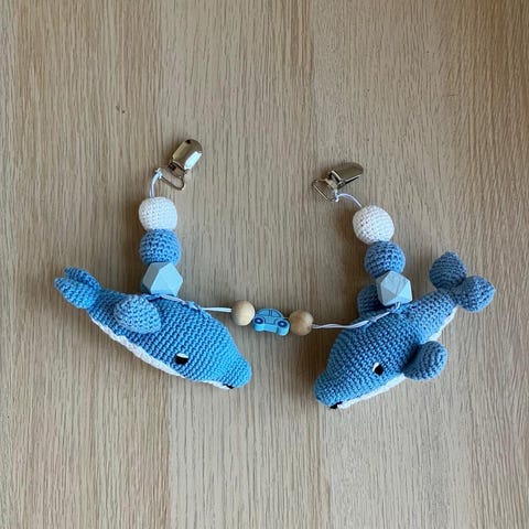 En söt barnvagnsmobil med en virkad hund och hjärtan. Perfekt för att underhålla din bebis under promenader. Virkad i bomull garn och fylld med testat allergi fiber vadd