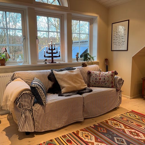 Soffan är en Miosoffa oxford 3:a+fotölj med fotpall,avtagbara sittdynor med dragkedja som kan tvättas. Nypris ca:35000:-