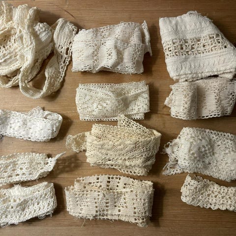 Äldre vackra franska örngott med brodyr och spets