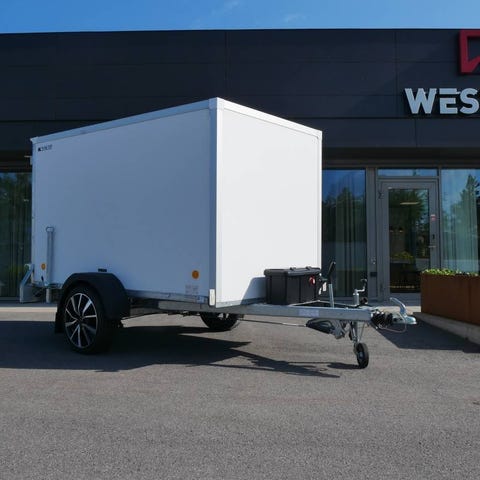 Cargo skåpvagn i lager för omgående leverans. Släpvagnen är demokörd och har inredning från System Edström.