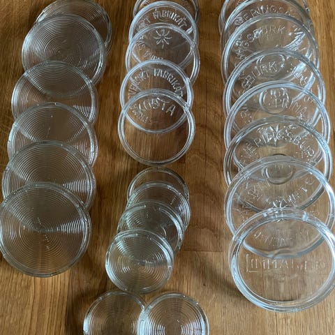 Äldre lock i pressglas till klassisk svensk konserveringsburk “IDEAL”.