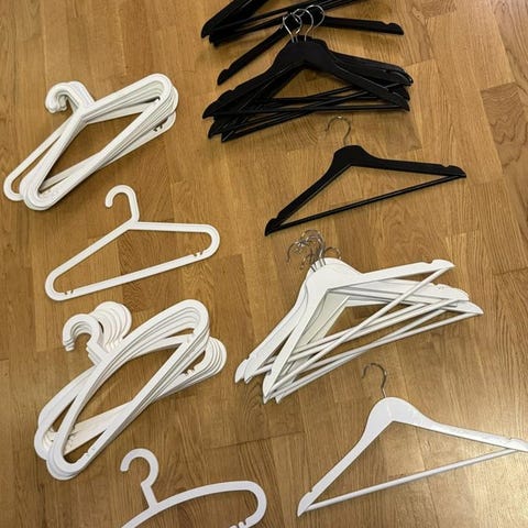 Säljer 20 st. vita galgar i trä för barnkläder.