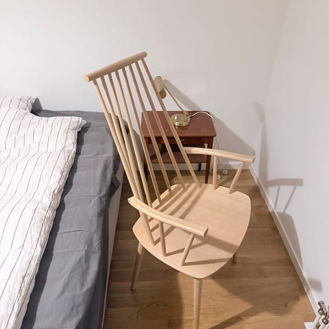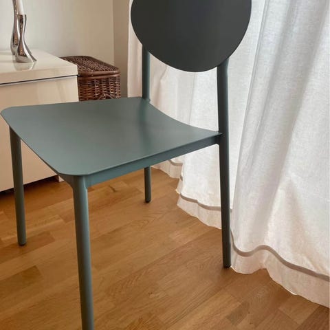 Stolarna från Hay heter ABOUT a chair -dustygreen med blackstained ben i oak. Köpta på nordiska galleriet 2022.