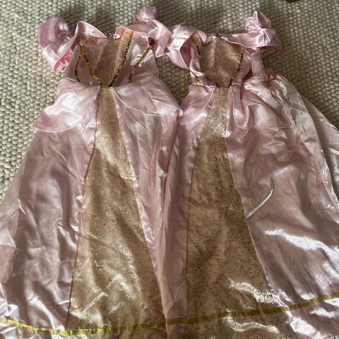En rosa princessklämning enligt bild 110/120 med skor allt i bra skick.