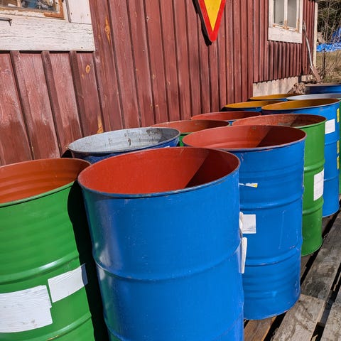 Ny eldningstunna för trädgården.