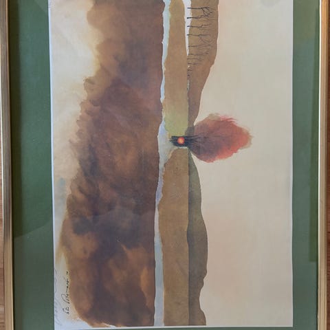 Känd Örebrokonstnär(1894-1955). Målade framförallt motiv av stadsdelar från gamla Örebro innan det revs. Denna målades 1954, ett år innan hans död.