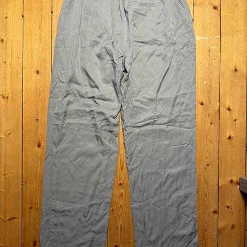 Blå blus med breda manschetter.