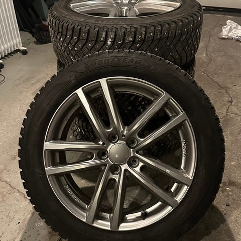 Fälgarna har bultcirkel 5x100 ET35 och har inga kantstötningar och däcken är i bra skick med mycket mönsterdjup kvar (se bild).