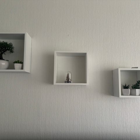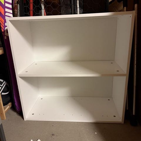 Kom aldrig till användning ca 1 m lång med fyra hyllor ca 20-25x20-25 cm