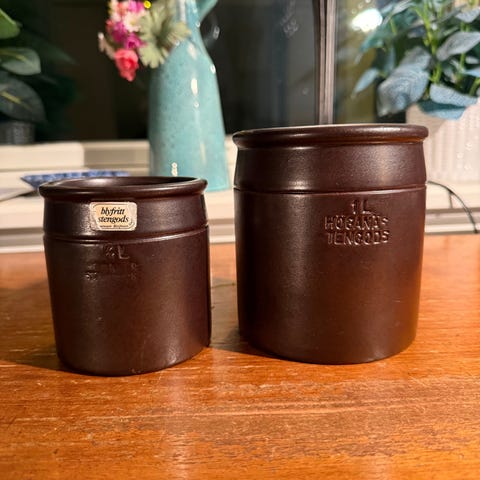 Kraftig kvalitet med vackert krackelerad glasyr och vågig kant. Fin som kruka i trägården eller ute platsen