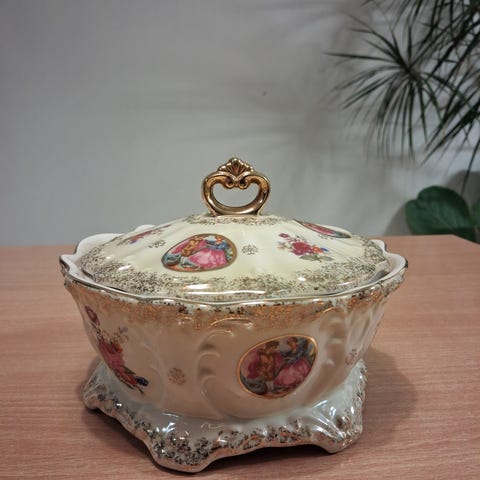 Vacker antik terrin i flintgods, troligen Rörstrand eller Gustavsberg från mitten av 1800-talet.