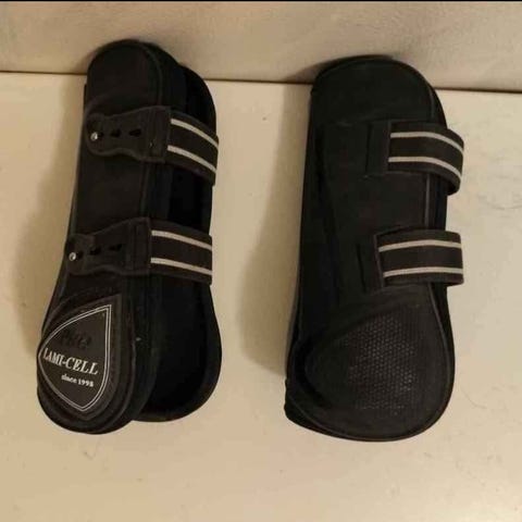 Superbra och snygga benskydd strl S. Svarta med vitt fluff, mesh på insidan för bra andas-funktion. Sparsamt använda, tvättade en gång.