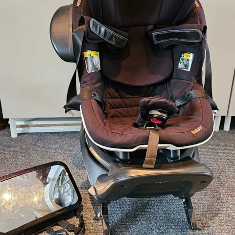 Snygg spegel som man fäster i baksätet på bilen så att barnet kan se en när man kör.