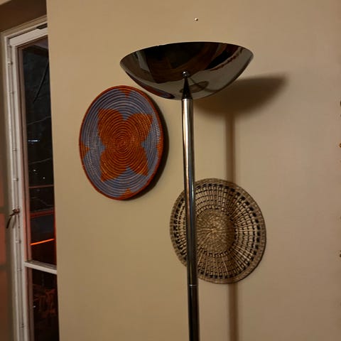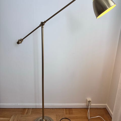 Hektogram golvlampa i metall med silverfärgad finish. Lampan har en minimalistisk design och är utrustad med en justerbar lampskärm. Passar för användning i vardagsrum, sovrum eller kontor.