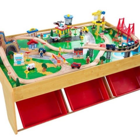 Lek/aktivitetsbord med kulbana och tågräls. Tre tåg medföljer samt kartong. Är köpt ny och endast använt av ett barn och därmed i mycket gott skick. Väldigt uppskattat av barnet.