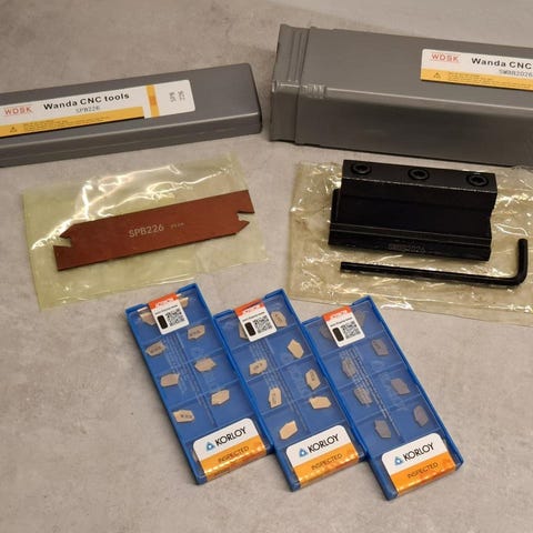 Ett nytt stickstål 2x26mm med hållare 16mm eller 20mm för nämnda stickstål samt 3st askar med Korloy skär 10st NC3020, 10st NC3030 och 10st PC9030.