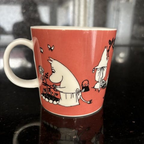 Mumin mugg ”Familjen”. Nummer 28. Oanvänd. Kan hämtad i Viksjö, Järfälla alt i Solna Strand vissa dagar under arbetstid.