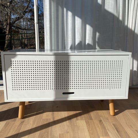 Med Bluetooth eller med lkabel. . Den thar flera anslutningar som HDMI ,RCA eller3,5 mm .kabel Marshall sSihnature ljud som tar fram det bästai varje låt mått bredd 40 cm, höld 30 cm , dju20 cm