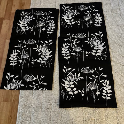 Marimekko brun färg. gardin längd för 250, kronor , och gamla lakan med broderier 400 kronor