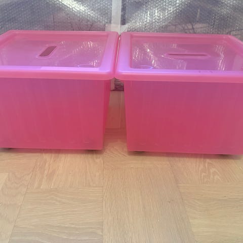 Förvaringsback med hjul från IKEA.