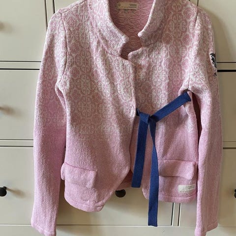 Koftan har en liten deffekt på stickningen(var så när den köptes), se bild 6, annars är den i fint skick.
