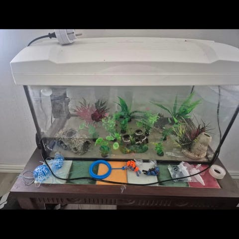Fisk 30-35 blå delfinciklid yngel ca 5 cm kan ingå med akvariet. Om man är intresserad.