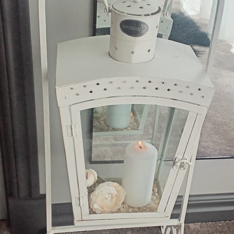Vit,metal H 55 cm och 18 i botten Ser ut som ny. Har varit inomhus hela tiden. Säljes 250 . Betalning swish Hämtas centrala vaggeryd. Den e kvar än så länge annonsen står