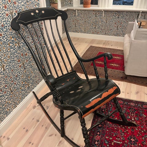 Säljer en antik gungstol från mina farföräldrars tid. Vet inte exakt när den är ifrån men vet att den är gammal. Fullt fungerande.