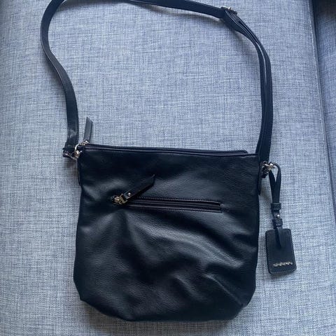 Axelväska handväska med lång rem i nyskick perfekt till vår och sommar. Material tyg och skinn/läder. Inköpt i medelhavsområdet. Axelrem cirka 120cm. Se bilder närmre för skick och mått. Kan skickas med PostNord fraktkostnad runt 50kr. Möts enklast upp för avhämtning i Stockholmsområdet, gärna på Södermalm/ Skanstull eller Gullmarsplan, flexibel med tid