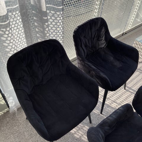Säljer 5st matstolar från ilva, sitthöjden med stolarna är 46cm. Material på stolen är svart konstläder. Nypris för stol är 2999kr/ st.