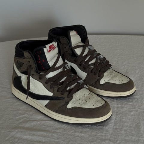 Travis Scott air Jordan 1 low vunna på SNKRS drop. Helt oanvända och allt är nytt förutom den yttersta boxen som skorna kom i som spruckit lite på kanten när jag skulle ta ut skorna.